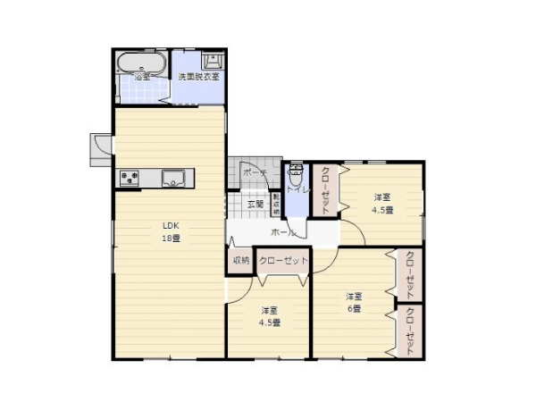 | 間取内容 | LDK18畳 洋室6畳 洋室4.5畳 洋室4.5畳 |
